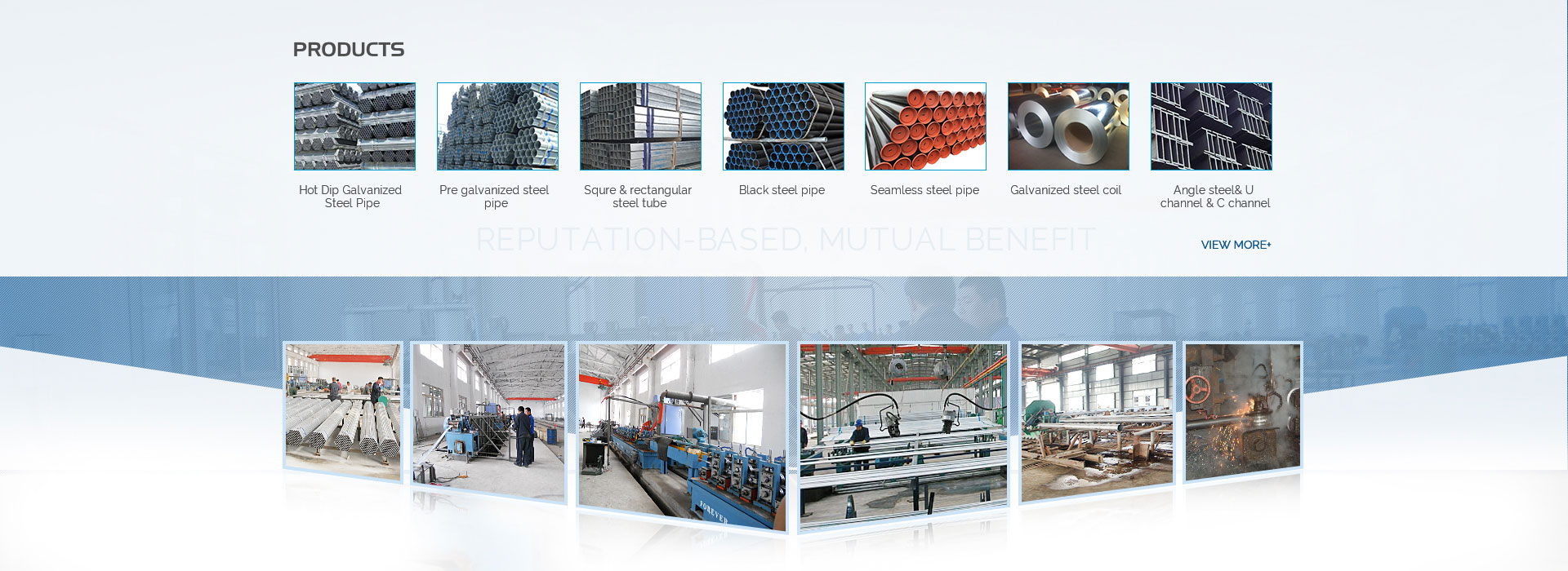 The main products are Black steel pipe,Galvanized steel pipe,Square & Rectangular steel tube, Seamless steel pipe, Steel coil/plate and steel profils.